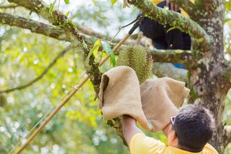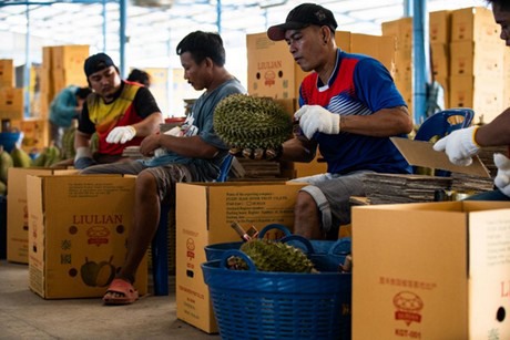 榴莲供不应求,而一个个新鲜榴莲从泰国果园流通到中国消费者餐桌,也是需要重重把关的,这当中涉及种植、技术指导、人工采摘、人工挑拣、果品分级、除尘、包装、运输保鲜、检疫检验等许多工序。