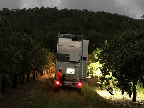 Yeppoon的Groves Grown Fruit的Ian Groves主持了原型自动收割机的首次现场试验,并对该技术的“改变游戏规则”的潜力感到兴奋。