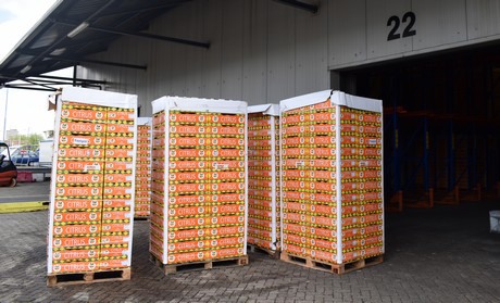 Peter在Merwehaven码头监督第一艘货船卸货。放在冷却船甲板上的冷藏集装箱被立即打开,装有柑橘的栈板被移入可容纳2万个栈板的冷藏仓库,分放入30个冷藏室中。水果在这里等待KCB和海关的定期检查,然后,客户可前来取货,并带到所需位置。“所有这些服务的价格都比大型航运公司优惠。”Peter说,“我们不需要向客户收取码头处理费、码头文件或额外运输费用。这些东西会使每个集装箱的成本增加几百欧元。”