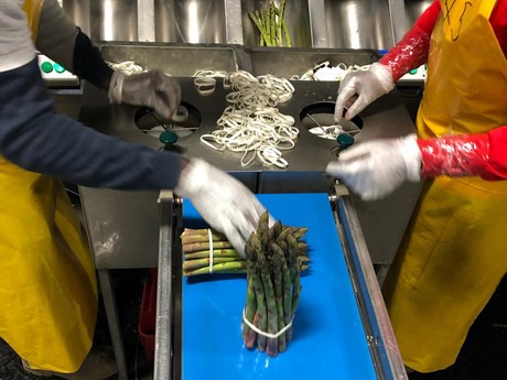 通过这台机器,芦笋被分类和捆绑: