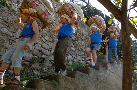 通过将树枝向上弯曲,可以形成一种圆顶,以保护树木免受天气影响。 种植者使用柳树枝将树枝绑在框架上。收获是手工进行的,然后工人背挑运输采摘的果实。