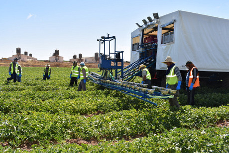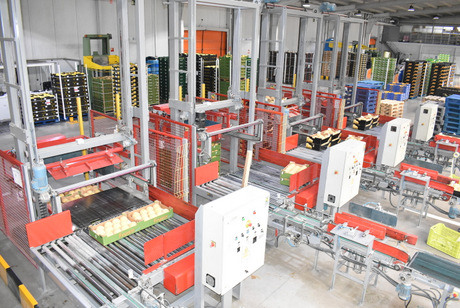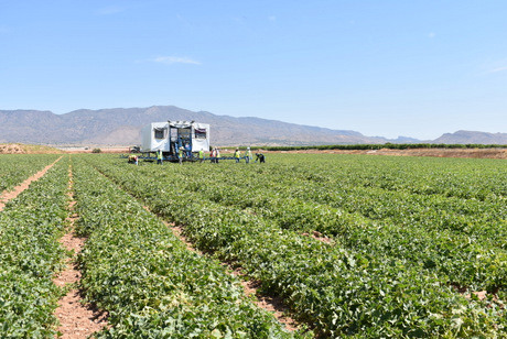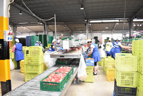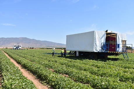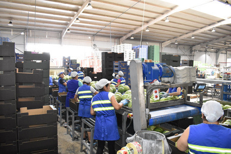 该公司用收获冰山生菜的机器收获甜瓜,但冰山生菜直接在田里包装,而瓜类在包装厂包装。这一清洗分类包装厂每小时可包装6万公斤瓜类或1.4万公斤甜椒。Fruca还拥有4.2万立方米的冷藏空间,其中包括四个真空冷库。
