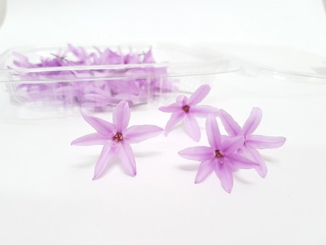 - 冻干食用花卉 这是一个高度技术化的工艺,花朵能保持其所有属性,外观引人注目。在经过冷冻或超冻后,花卉的湿度通过高压(升华)去除,产品使用寿命超过两年,主要用于烘焙。
