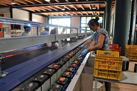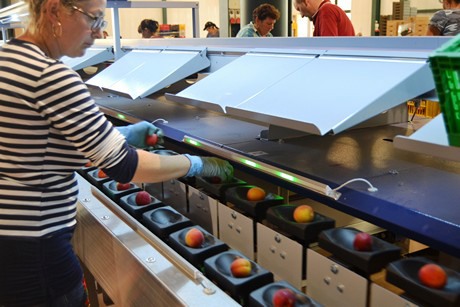 “水果由人工装货和卸货,以确保每个水果都能完好。到目前为止,加工厂只能处理不会出现淤伤的硬果,但这影响了感官品质。我们的分级设备虽然机械处理水果,但非常细致。”