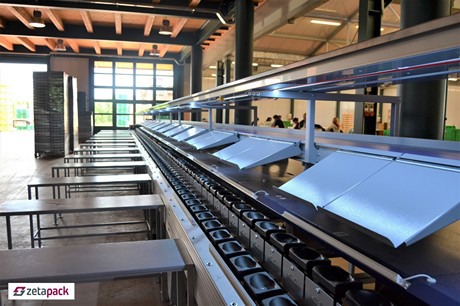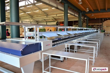 这一分级设备可用于多种成熟水果的的分级——杏子、柿子、梨、苹果、桃子和油桃,这也要归功于该设备所采用的的可互换杯槽设计。所有Zetapack分级机都获得了专利。