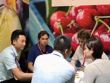 悦好董事长及公司负责人在广州世界水果展上与小蜜蜂Cerasus商讨新一产季合作细节