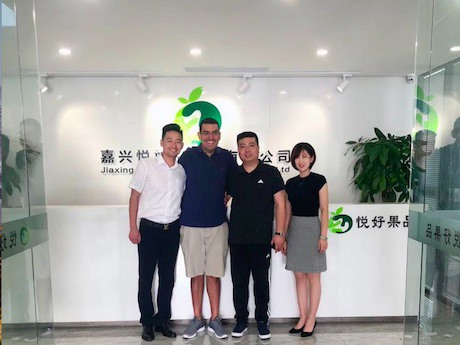 Gesex中国区总经理Gonzalo Matamala到访悦好果品,与悦好左一,悦好总经理魏玉友,右二,执行董事任奎,右一,国际采购总监Mia Lu合影