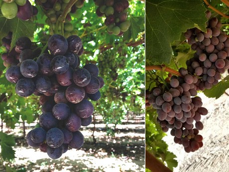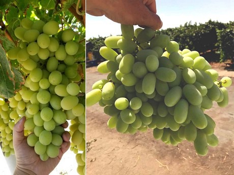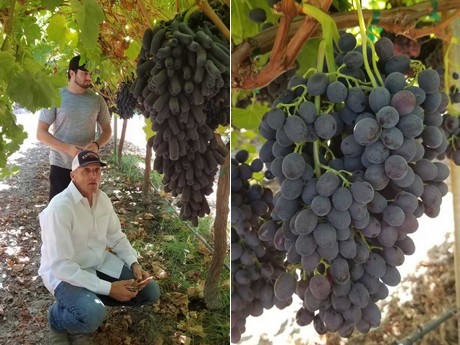 团队成员正在检查Sweet Sapphire品种葡萄;右边的是Candy Dreams品种葡萄