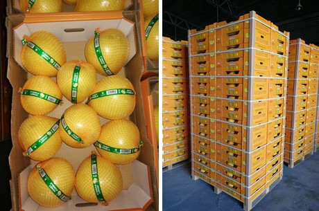 “平和白柚的产季为八月中旬到十二月中旬,销售旺季将会持续到来年一月底。由于天气原因,白柚小果的产量同比去年同期减少约25%。在保证品质的情况下,预计今年白柚的出口到岸价在每吨650欧元左右,价格略高于去年产季。”汪经理表示,“海外市场对柚子品质的要求很严格,出口的产品全部需要通过SGS农残和重金属检测。在+5°左右的环境下,柚子的保鲜期在60天左右。为保证品质,我们的产品全部使用环保材料包装,外加网套,打上条形码彩带和叶标,再用纸箱分规格包装,以冷藏货柜发运到各个港口。”