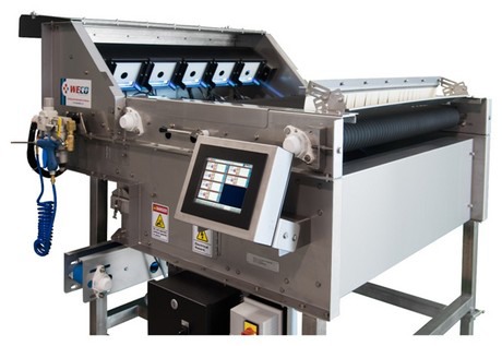 他说,由于许多品种没有均匀染色,WECO公司同一年在分选机上增加了一个较低的相机,之后这种机器能够检查同一浆果的两面。“与单一视图分选机相比,这使得分选效率提高了30%以上。另一个重要的发现是能够使用工程团队已经内置在相机中的非常特定的红外光波长来分拣过熟的软蓝莓。到2006年底,‘BerryTek双视图颜色和软度分选机’诞生了,这是我们的第一款蓝莓分选机型号。”