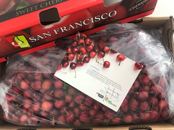 今年首批亮相中国市场的车厘子是来自GARCES FRUIT子品牌San Francisco Lo Garces(SFG中文“三藩市”)的车厘子,品种为智利车厘子早期品种之一的Brooks(布鲁克斯),尺寸主要为SJ(JJ)级和J级。