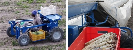 左:ASV收割机,适合单独作业,也适用于绿色芦笋的收割;右:成熟的Engels蜘蛛型芦笋收割机。