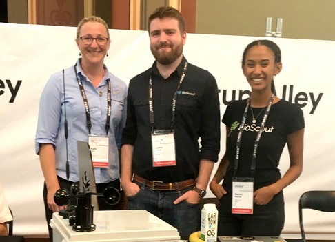 来自Bee Innovative的Kate Lyall from与来自BioScout的Lewis Collins和Saron Berhane