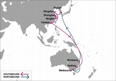 釜山–青岛–宁波–上海–盐田–悉尼–墨尔本–布里斯班–釜山