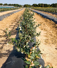 一些来自MBO Australia公司新的遗传品种的蓝莓灌木使用盆栽基质种植,而有些则种在露天的田地里,过去这里曾种过花卉以供出口。