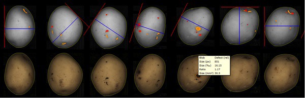 您可以使用光学分拣技术测量马铃薯的内部和外部
