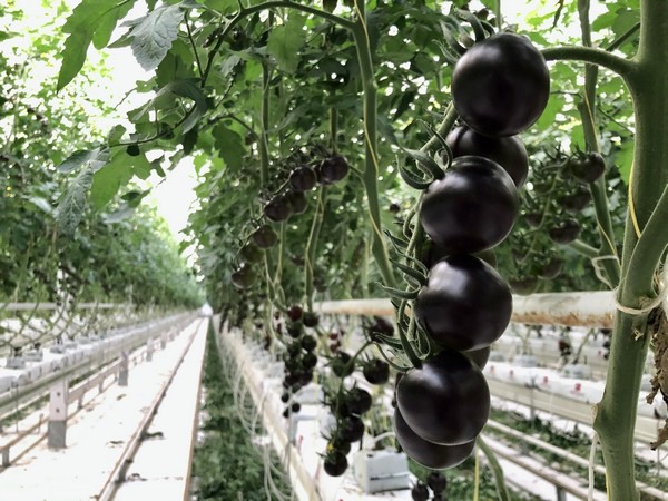 据先正达集团中国品种负责人吴海燕经理介绍,YOOM番茄是先正达集团中国全新推出的鲜果品牌,该品种通过传统的杂交技术优选出的精良种子培育而成。由于富含丰富的花青素,番茄外表不同于传统红色系番茄,而是呈紫色。取决于日照时间长短,表皮的颜色会由黑色转变为紫色。除颜色差异外,目前市场上常见的一般是樱桃番茄,而YOOM为鸡尾酒番茄,单颗重量在35-40g左右,目前这种类型的番茄在市场上不常见的。该品种为无限型生长番茄,根据各地的试种反馈,YOOM还是比较适宜国内种植的。