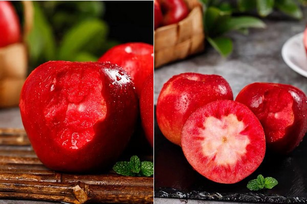 今年是庆新果业第一次在线上销售红肉苹果。“新疆阿克苏和甘肃天水是红肉苹果的主产区。该品种的特点是表皮和果实全部是红色的,非常新奇独特。圣诞节前期,我们在天猫平台上的走货量爆增,几天内销售了4000多盒,一举成为天猫小众苹果的销量之最。虽然走货快,但客户的回购率较低。原因主要是红肉苹果口感很酸,不喜食酸的消费者或许很难接受。由于产量小,价格相较于其他大众品种更高。天水产区的产地收购价为8元/斤左右,天猫平台的精品礼盒装果品价格在80元/盒(12颗果)。”