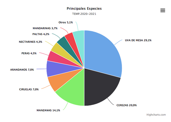拉丁美洲是该国苹果的主要市场(占总数的55.9%)。欧洲是梨(占总数的54%)和鳄梨(占总数的74.5%)的主要目的地。
