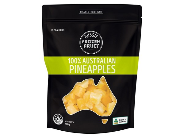 Aussie Frozen Fruit公司首席执行官Brett Jackson表示,新的冷冻菠萝是在成熟时采摘的,以保持其成熟和风味,而400克的包装仅在Woolworths超市有售。