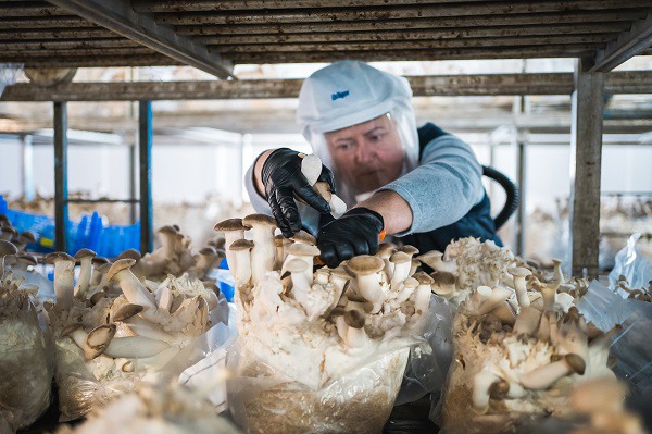 公司的农场很大,有不少于44个种植室。因此,他们可以进行专业化生产,并扩展他们的异域蘑菇种植。这些蘑菇不是像普通蘑菇一样在培养床上生长,而是在一袋袋的基质中生长。