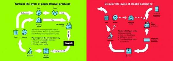 现在存在一个可行的能够替代塑料冷链包装的解决方案,特别是对于需要24小时甚至长达48小时的保温保护的产品。Ranpak公司开发了一种环保的冷链纸质包装解决方案:WrapPak Protector。该方案的保温衬里100%使用纸张来代替石化产品,具有许多环保效益: