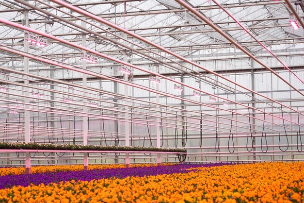 现在其温室中添加了一个额外的部分——安装生长灯。这些光照灯使得全年提供相同质量的产出成为可能。"就温室的光照而言,你实际上希望达到六月中旬的水平。仅就光照水平而言是这样,但是温度可以低得多,以获得最佳的花朵形成。”部分地考虑到LED灯的低能耗,对光照灯的选择落在了Mechatronix的CoolStack® MAX灯上。"与该供应商一起,我们确定了理想的光照方案。该方案的一部分是在我们自己的研究和展示区中确定的,我们在那里使用具有可控光谱的特殊灯具来找出最适合食用花卉的方法。具有此光谱的LED灯现在安装到逐个格子里。其光量和照射时间可以调整。”