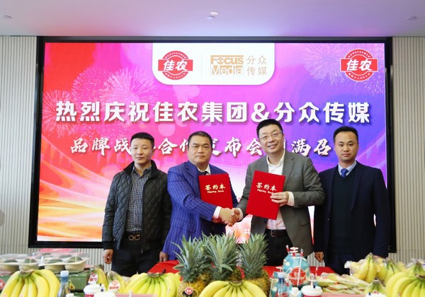 1月16日上午,佳农集团与分众传媒在佳农总部召开联合发布会。佳农集团董事长刘自杰先生和分众传媒董事长江南春先生正式签署战略合作协议,建立品牌合作关系。相信两大行业领先品牌的强强跨界联手,将为国内果蔬生鲜行业注入不一样的生命力。