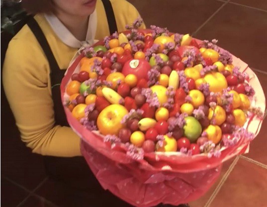 事实上,不仅仅是鲜花,在过去的几年中,水果花束的市场受欢迎度逐年提升,这种创新性产品尤其受到年轻一族的追捧。所谓水果花束,就是将水果用专业的手段支成花朵状,看着像花,拆开实则是一份水果。