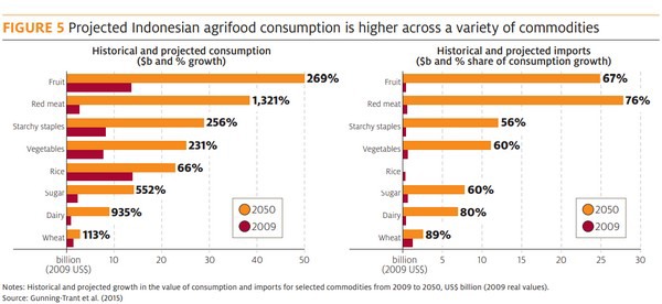 "这些预测来自ABARES发布的一份报告《印度尼西亚想要什么:到2050年印度尼西亚食品需求分析》",该发言人解释说。“这些预测考虑了现实世界的历史消费水平和基于印尼经济和人口变化的未来预测,如GDP、城市化和收入。尽管这些预测是在2015年发布的,但食品需求将由收入增长、人口增长和城市化驱动的结论仍然正确。随着一个国家的收入增加,就像印尼一样,我们预计对优质产品的需求会增加。”