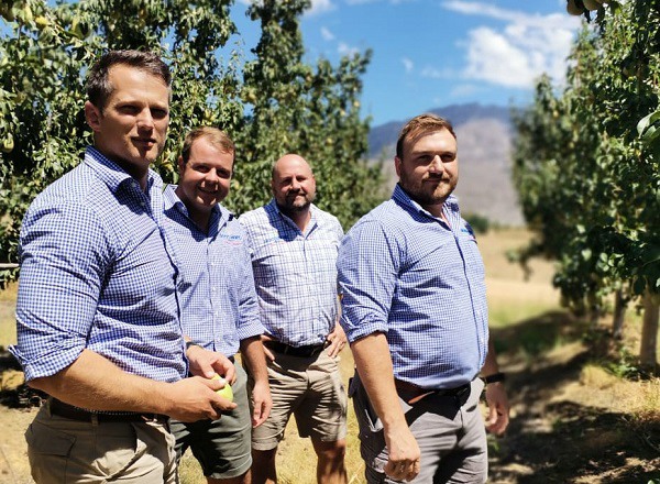 Good Hope Fruit 的出口经理们在Abate Fetel果园内:Marnus Schoeman, Melt van Schoor, Anroux Smit and Jan Ras van der Linde