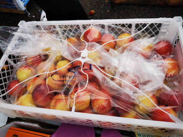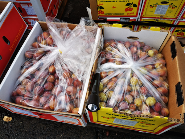 近日全球果蔬网记者走访广州进口水果市场,看到不少商户都在销售当季的智利桃驳李。该果品在春节期间开始上市,大约能卖到5月。目前一箱18斤装的桃驳李,售价大约在¥160-¥170左右,不少商户都放置在档口当眼处销售。