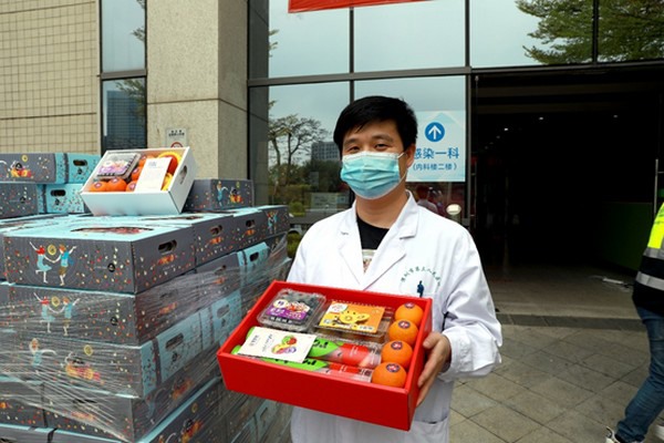 深圳市第三人民医院医生接过鑫荣懋援前线专属水果礼盒