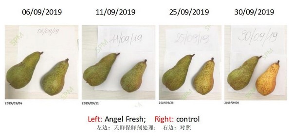 “鲜梨通过冷库储存可以实现全年供应,因此梨的保鲜管理非常重要。但不同品种的鲜梨的成熟条件和特征不同,如啤梨需要变软成熟、佛见喜梨在成熟时由浅黄色变为红色、酥梨需要保持硬度和颜色等,所以我们会为不同品种的梨定制保鲜解决方案。”Debby 说,“1-MCP是一种非常高效的乙烯抑制剂,能有效的延长梨的储存时间和货架期。根据梨品种的不同,禾金正会提供不同的保鲜解决方案。