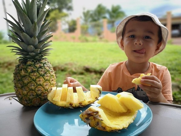 “相比传统种植的菠萝,我们的菠萝在树上成熟的时间要多几周,因此收获时甜度更高。平均糖度在17,最高可以达到19,” Christian说。 “不同于苹果和香蕉可以在绿色的时候收获并自己产生糖分,菠萝的甜度必须从树上获得。因此,在树上多挂两周可以让菠萝无需催熟,就获得香甜和美味。”