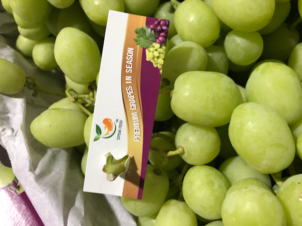 经纬鲜达公司拥有名为“Topsun”的自有品牌智利提子,囊括黑提、红提、青提三个品类。“我们通过精选果园,改进包装方式和物流方式,以最大程度地保证智利提子的口感和新鲜度。”Daniel介绍道。“传统上,智利提子是以在一个塑料或木箱里放置多个塑料袋的方式包装。今年我们改进用更环保的纸箱,并且散串包装(bulk pack)”,即将提子修剪后直接放置于纸箱中。这种包装的好处是,对果农而言,减少了袋子的成本且更容易包装;对提子本身而言,保证了提子的新鲜度和果粉,并减少客户端的损耗。另外,有别于智利提子大多数采用海运的方式,我们更多运用空运包机。由于大大节省运输时间,提子的口感和新鲜度得到最大程度的保证。目前一箱4.5公斤的提子售价约为¥250-¥300/箱,虽然成本较海运有所增加,但因为品质好而依然供不应求,有些品种甚至都要提前预售。在品种方面,目前我们今年自己包装的提子中,黑提占比更多,青提红提也有。”
