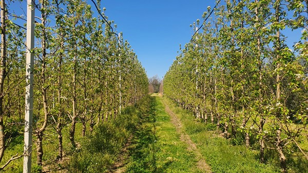 “我们需要摆脱传统的梨树种植模式,一棵树有 4-5 根主枝, 过多的支撑木结构紧贴树干,导致结果枝更少。尽管树冠很宽大,但不利于通风和坐果分布,还会纵容有害生物的生长。这种过时的种植方式成本高、产量低、树冠管理复杂、需要的果树保护处理过多、残留果过多, 4 米 x 4 米(600-700 株/公顷)的低效种植密度,只会让种植者望而却步。”