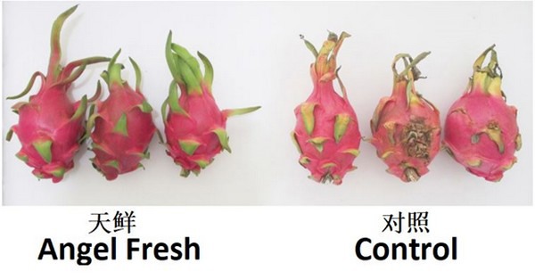 “目前,火龙果采后变质的主要原因是腐烂、冷害和鳞片黄化萎蔫。采收的果实,常温贮藏3天鳞片出现黄化、萎蔫现象;贮藏7天果皮出现明显皱缩现象,且鳞片萎蔫严重。”Debby介绍说,“我们公司的ANGEL FRESH保鲜技术可以减少火龙果储运中的脱水和鳞片黄化萎蔫问题,保持果实硬度,减少重量损失从而达到延长货架期的效果。”