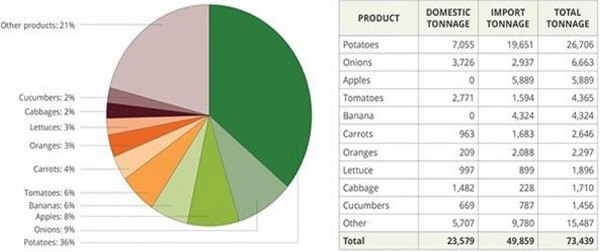 2018年纳米比亚本地和进口园艺产量(来源:纳米比亚农艺委员会)