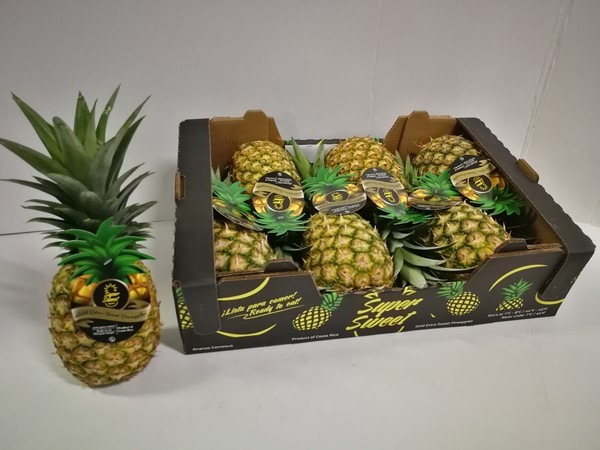 与传统菠萝相比,金菠萝具有更高的甜度和更高的甜度。 “我们的菠萝外表看起来不是绿色的,它们完全是黄色的,可以直接食用,甜度高,白利糖度高,是哥斯达黎加的特产。当它到达时,它是即食的,被视为熟食。成熟过程在植物中进行,我们收获、包装并通过空运和海运发送。这是我们的专长。从收获到空运可能需要长达三天的时间,具体取决于目的地,”Chaves 详细说明。