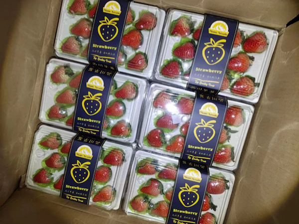 谈及对这个夏季的销售预期,李总表示:“就这个夏天而言,目前看不太乐观。由于疫情和防控政策的原因,物流受到非常大的影响。例如往返中高风险地区人员需要观察隔离,使很多省外人员不太乐意过来广州市场。其次,对城市当地的流通也有影响,线下商超人流减少,线上电商则物流不通发货不畅。所以,对近期的水果销售不太乐观。如果这个夏天疫情能基本稳定,像前年、去年那样,走货就能乐观。期望在七月前、十一黄金周前,疫情能稳定下来。”(右:国产草莓)