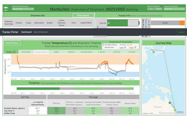“Manbulloo 的理想解决方案是一个单一的仪表板,我们可以在其中设置具有高度定制性的记录器(记录器 ID、批次代码、链中的步骤、最佳温度范围等),并实时访问所有数据,无论何时捕获以及使用什么记录仪品牌,”Manbulloo Ltd. 董事总经理 Marie Piccone 说。
