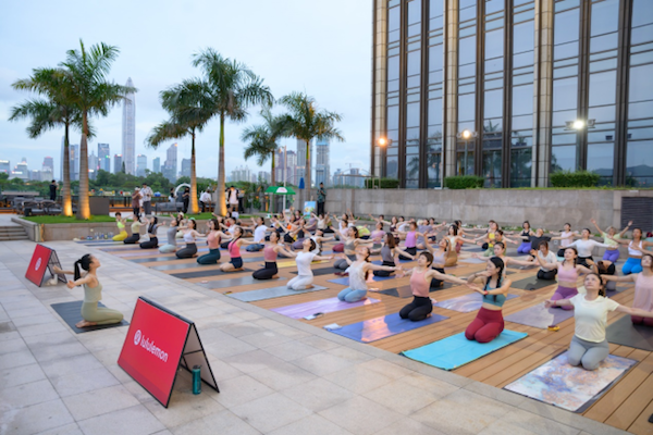深圳 lululemon COCO Park 门店,一场落日瑜伽于 6 月 21 日当天举行。来自不同领域的参与者在瑜伽大使、营养师的带领下,一同感受着瑜伽的力量和美味唤醒的活力。