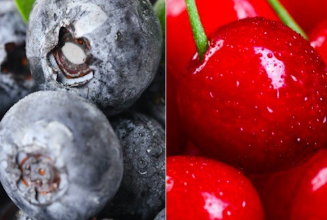 麻江蓝莓(左)和纳雍玛瑙红樱桃(右)