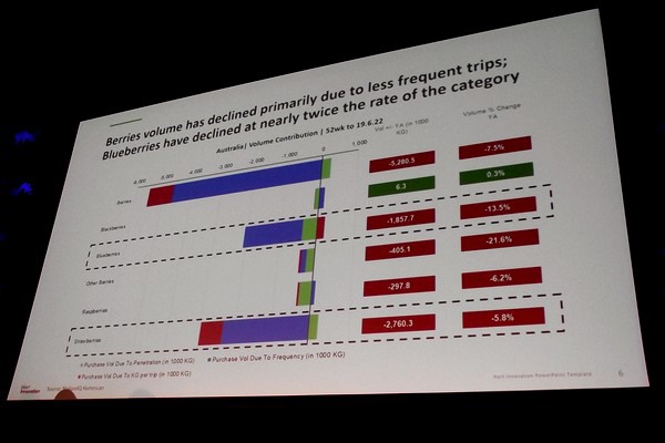 “浆果整体下降了 5%,”Margin 先生说。 “销量下降 7%,但我们实际上看到平均零售价格在上涨。这是我们在所有浆果品种中看到的一致趋势。我们看到价格上涨,销量下降。我们看到人们购买浆果的频率降低了。 “人们对草莓的购买频率下降 5.8%,对蓝莓的购买频率下降 13.5%。蓝莓似乎面临着独特的挑战。”