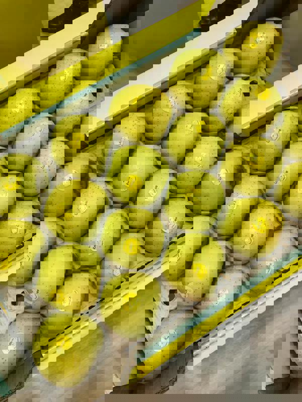 育种者Gradilis20年研究努力,再加上5年来营销和销售策略的筹划,Lubee最终成为有机黄苹果品中的新星。“最初接触Gradilis时,我们正在寻找一种有机黄苹果来补充供应上的不足。立即赢得我们的是它的味道。质朴的外观下,Lubee集中了年轻一代消费者所追求的、鲜食苹果的所有出色品质。咬下去时,味道在口腔爆炸,它非常甜,糖度在17到18度之间,带有热带水果风味,非常脆且多汁。这让我们相信它将赢得年轻消费者的喜爱。
