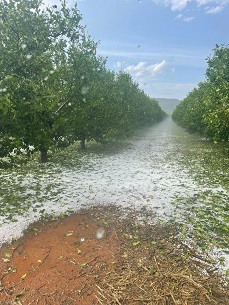 右图:2022 年 11 月冰雹过后,Senwes 的巴伦西亚果园