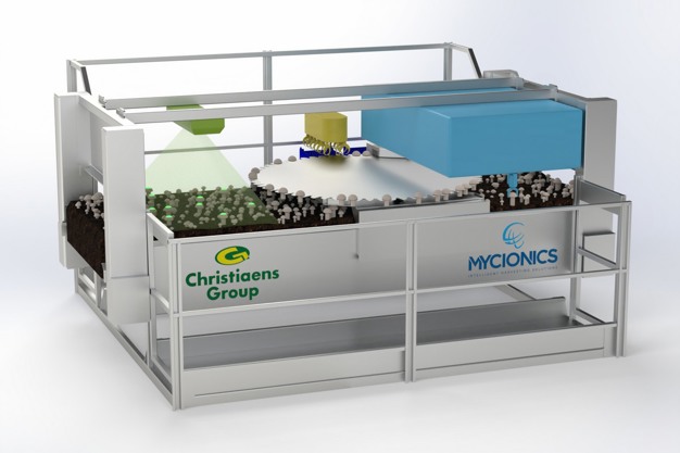 Christiaens Group 与 Mycionics 合作,展示了从蘑菇采收到包装厂的全自动解决方案。 Christiaens 面向未来的 Drawer System 与 Mycionics 最先进的机器人技术相结合,这标志着该领域的进步。 Mycionics 的机器人采摘机与人类协同工作,展示了以两倍速度采收蘑菇的能力。这不仅提高了生产力,还减少了对劳动力的依赖,从而在降低生产成本的同时提高了作物产量和优质产品。