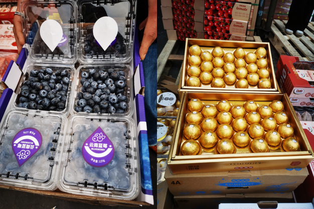 中国产云南蓝莓目前在售包括珠宝及西班牙品种,随着产季发展价格逐渐下调。目前珠宝品种15+规格约售¥90-¥100/件,西班牙品种因纯甜口感及货量较少而售价高,约为¥140/件。珠宝品种因价格优势而走量较好。