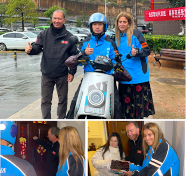 智利水果出口商协会会长Iván Marambio与樱桃委员会执行总监Claudia Soler化身饿了么外卖员,为粉丝派送车厘子